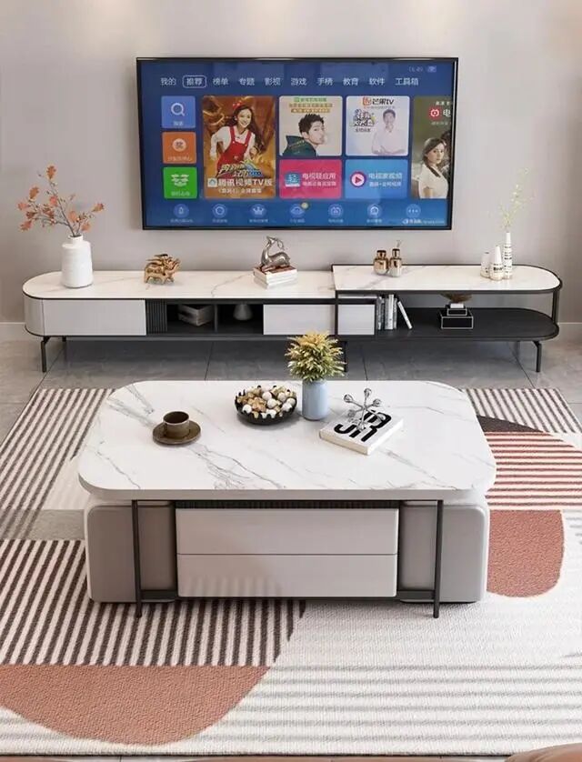 如果家里面积小,需要将茶几当餐桌使用,也可以理解。但是在住宅面积还算可以的情况下,为什么还有很多人去选择变形茶几呢?要知道,茶几的本质无非就两点,一是收纳一些杂物,二是提升客厅的美观度。