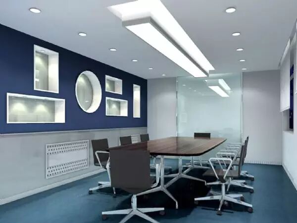 8、会议室照明要考虑会议桌上方的照明为主要照明。使人产生中心和集中感觉。照度要合适,周围加设辅助照明。