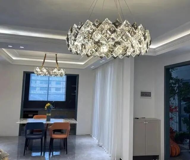 吊灯注定是属于大户型的,压低层高、占用空间且积灰难清理。对于中小户型客厅来说,简洁的吸顶灯或是无主灯才是正确之选。