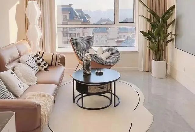 如果是小户型的客厅,比如小于30个平方的客厅,那就不要选择大的茶几,大茶几会占用客厅空间,如果茶几太大的话,与电视柜之间恨不得都要碰在一起,行走都会比较麻烦。