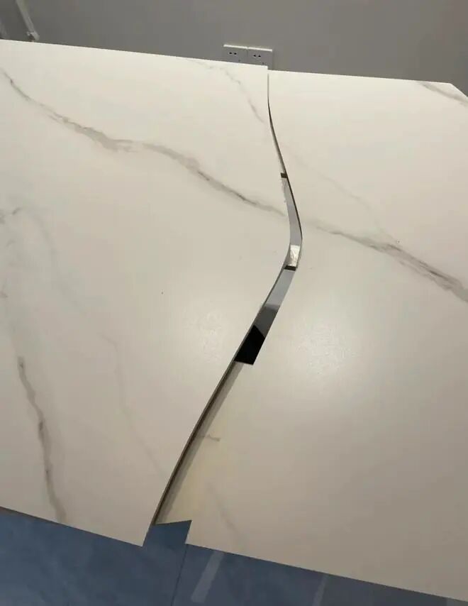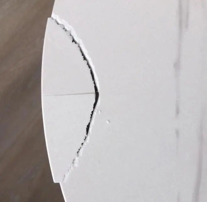 有不少人入手的“岩板茶几”,也会遇到类似的情况。如果说单个岩板家具出现碎裂的情况,可能是意外,是小概率事件。但是当大多数岩板家具都有类似的情况时,就应该考虑到了,岩板的弊端就是脆。