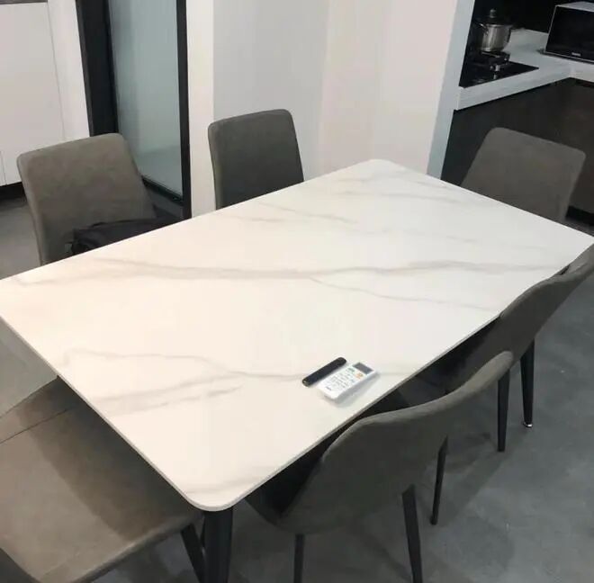 尤其是岩板的厚度比较低的家具成品,在选购的时候,一定要注意。理论上,岩板的厚度越厚,越不容易碎裂。所以必须要关注到厚度的指标。
