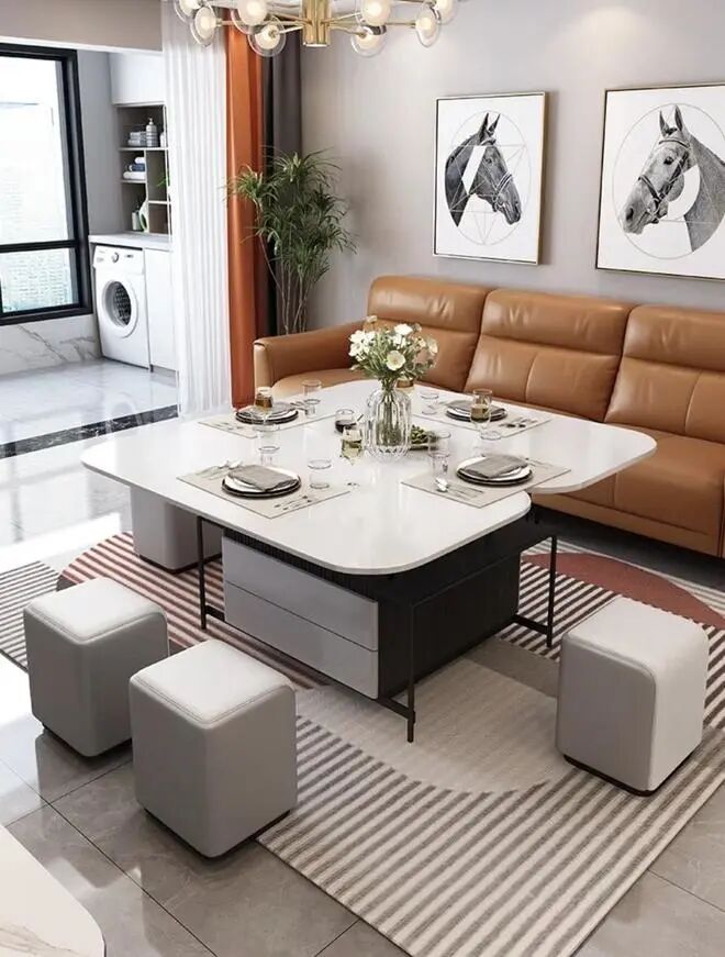 这些变形家具,虽然听起来“很实用”。但真正住进新家之后,就会发现根本用不了几回。比如变形茶几,我甚至到现在都没有搞明白,把茶几变形成餐桌干嘛?吃饭吗?