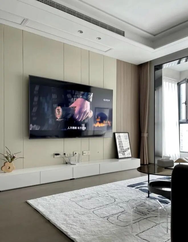 而相比于矮脚的家具,像上面这种“落地”的电视柜和沙发,反而更加人性化。毕竟它至少不会有积灰的情况。