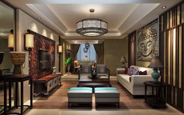 东南亚风格的装饰中,室内所用的材料多直接取自自然。由于炎热、潮湿的气候带来丰富的植物资源;木材、藤、竹成为室内装饰首选。东南亚家具大多就地取材。