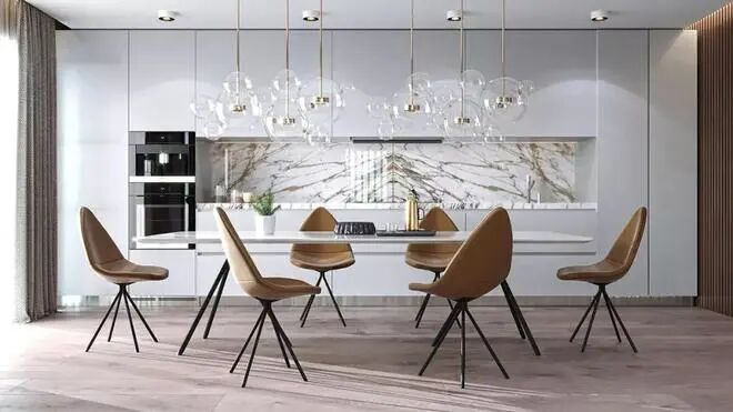 具有收纳功能的餐边柜是餐厅的重要家具,可以作为厨房功能的延伸,不仅能增加就餐氛围,更是提升空间利用率的利器。如果餐厅位置不足,可以考虑靠墙设计几个开放性搁板,方便临时储存东西。