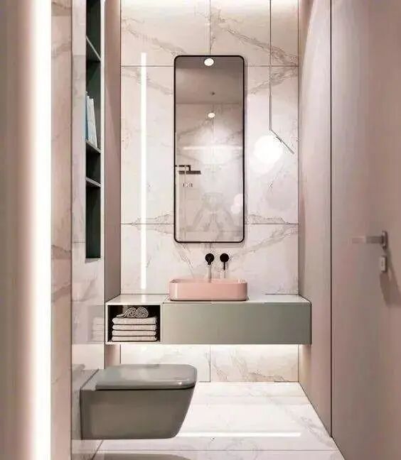 在卫生间买成品柜,容易发潮,发霉。其实在卫生间角落处,加入一些简易的开放式的搁板就可以啦,把我们常用的洗漱用品都放在边角柜上,非常便捷好用。