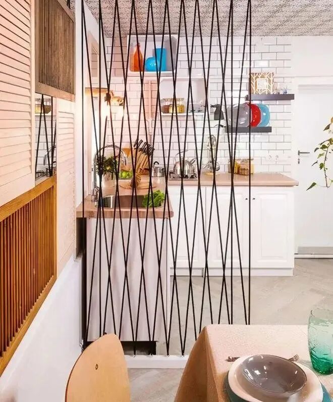 绳子做隔断,个性感十分强烈,轻便感强,也能适合不同的空间大小,利用绳子还能编织出不同的花纹。