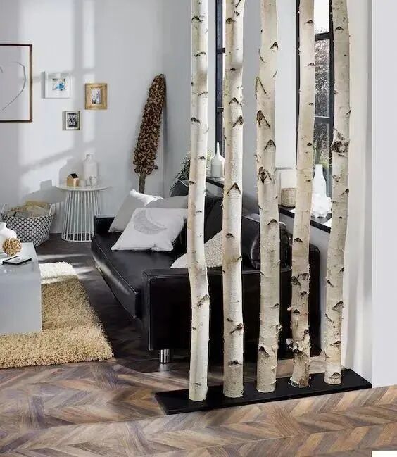 树枝做隔断,相对比较少见,用倒是没问题,但是需要注意一些小细节,树枝的含水量要低,前期一定要做好防腐工作。