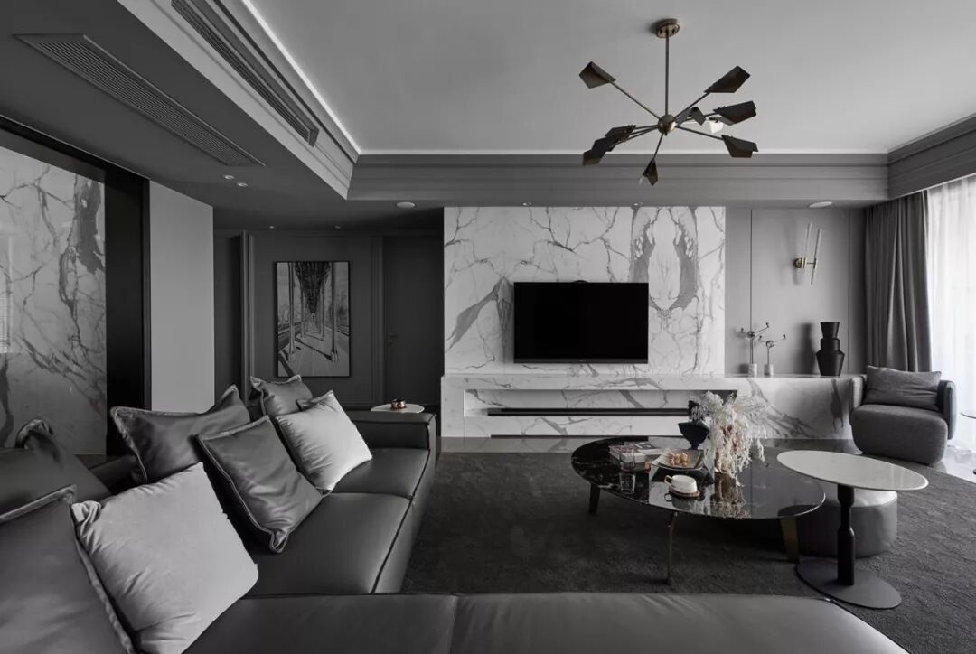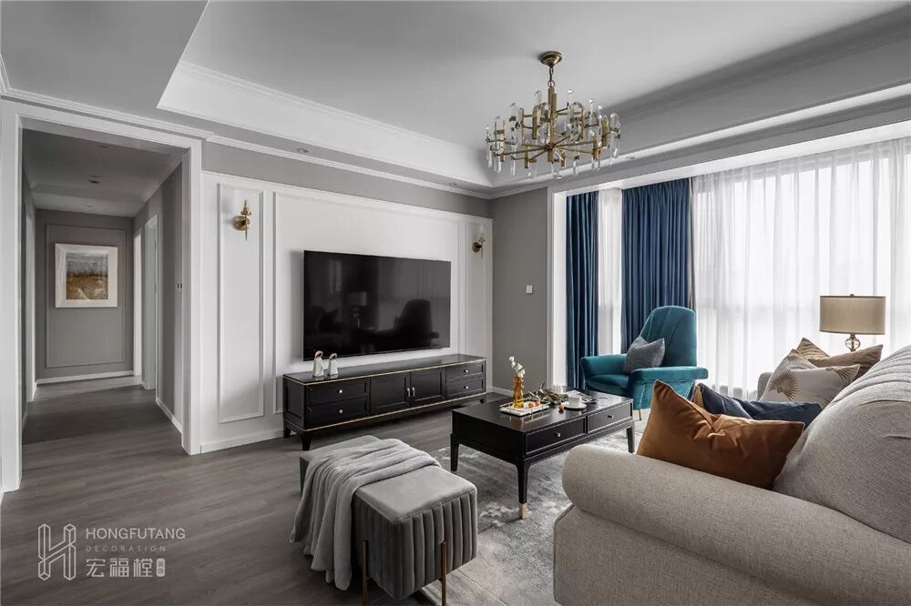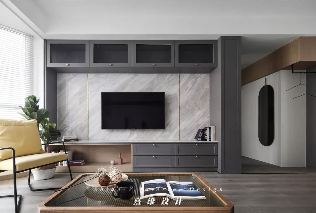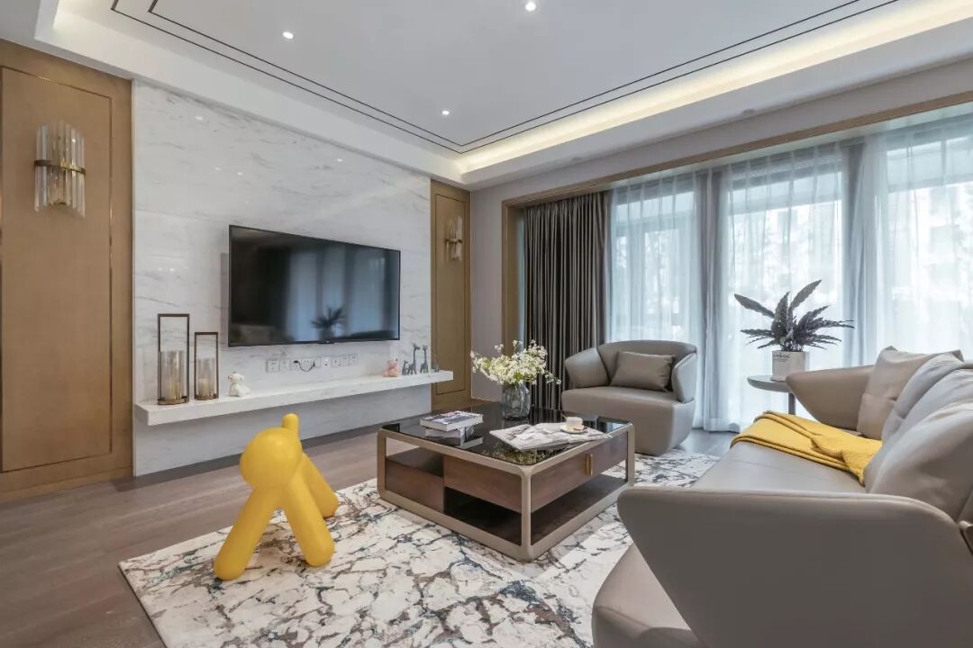 电视背景墙是整个客厅的聚焦点,