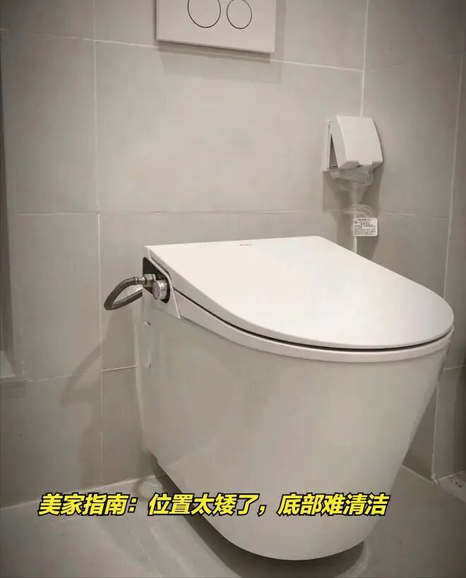 实际上让马桶上墙的设计,对施工技术也有一定的要求。尤其是预埋件的高度位置。如果前期预埋件的位置不对,等到瓷砖铺完,马桶上墙的时候,就会发现很容易翻车。无论是装高了,还是装矮了,都会影响到体验。所以与其安装壁挂马桶,不如老老实实选择普通的安装方式。