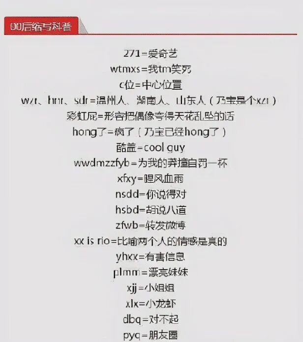 网传缩写科普字母表