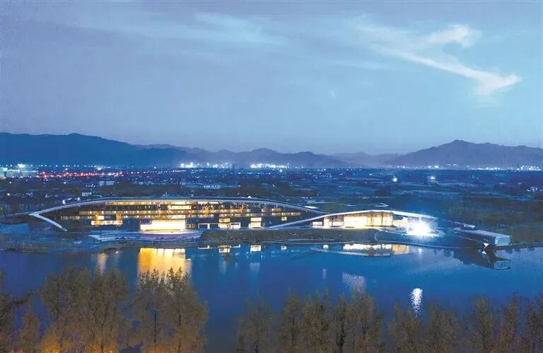 加上与周边山脉交相呼应的人字形屋顶,以及馆内天花板上200米的“江水灯带”,尽显富春山水意境灵动之美。