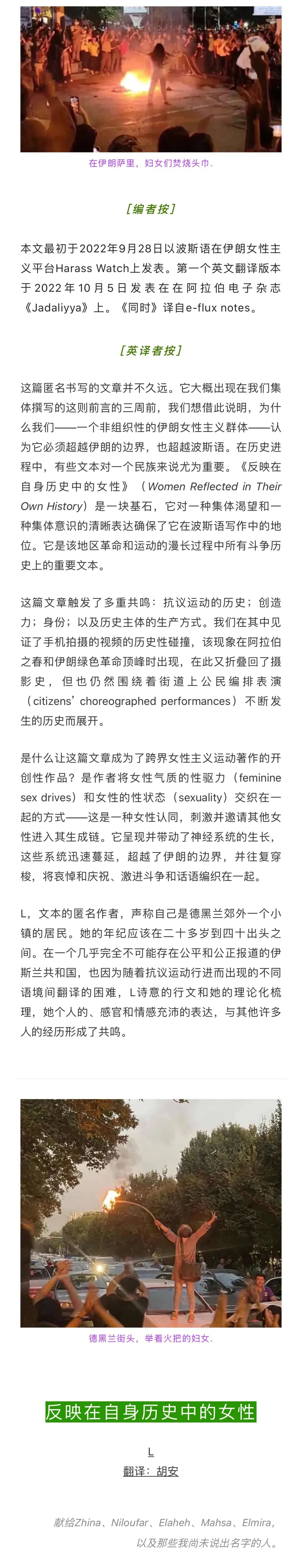 这个开源文档[https://pad.riseup.net/p/Women_in_the_Reflection_of_their_own_History-keep]收集了对L文本的回复。它有助于这种日常的、持续的命名活动,在我们自己历史之镜中命名。这个文档邀请每个人把你自己的链接添加到这个由“Jian”驱动的链条中来,来丰富这些表达:你的经验,你的反应,以及用你自己的语言进行的翻译。