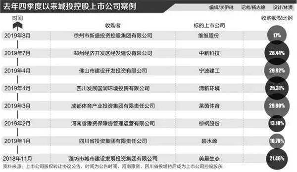 据21世纪经济报道记者不完全统计,去年四季度以来共有八家融资平台及其子公司入主民企上市公司,成为其第一大股东(详情见图表)。考虑到有诸多程序要履行,有的案例尚未实质完成并购。