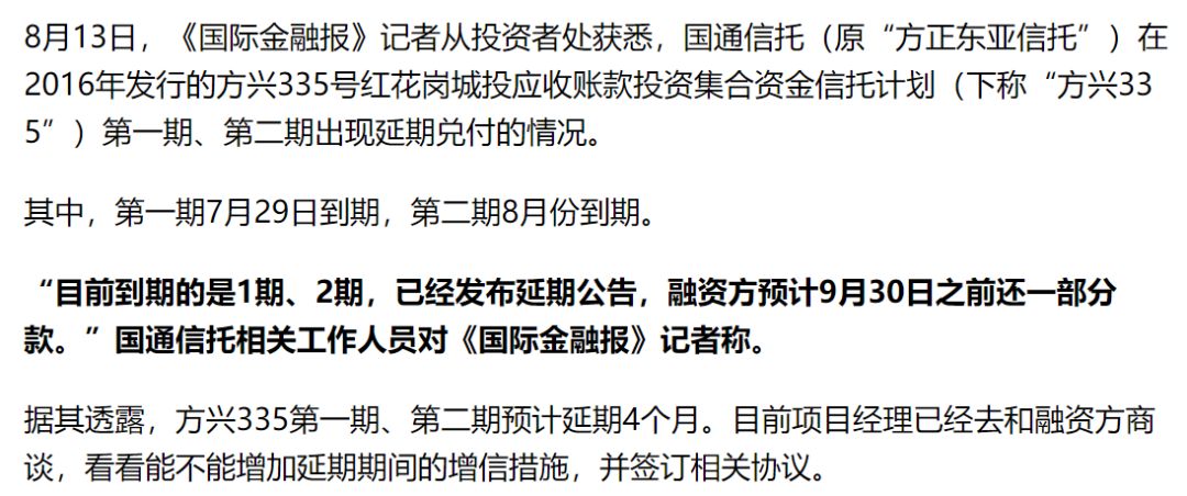 无独有偶,一周前遵义的另一个信托项目发生兑付延期。