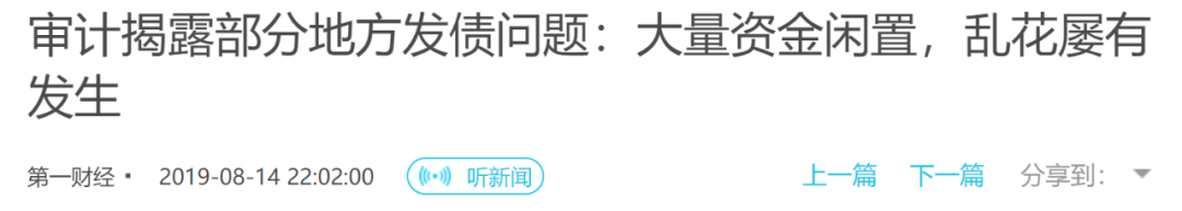 之前广东省审计厅披露,截至2019年3月,广东省本级和广州等13个市、55个县共有138.76亿元新增政府债券资金存放在财政部门或预算(项目)单位未实际使用,占2018年新增政府债券总额1354.3亿元的10.25%。
