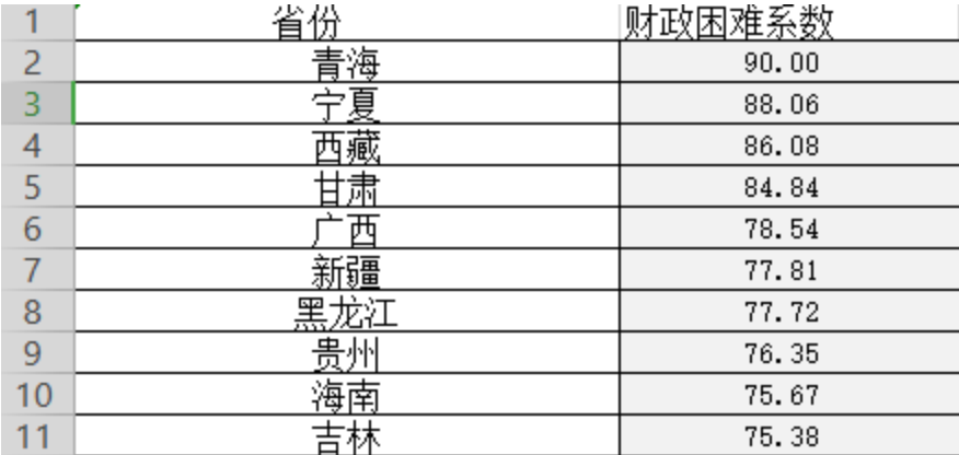 所涉及的地方包括河南、贵州、内蒙、云南、青海、陕西、四川、宁夏、湖南,在财政困难系数的榜单上,分别排在:第12、8、19、11、1、15、16、2、13。