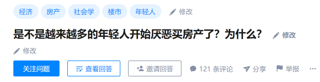 第一,现在进入社会的年轻人,直接面对的都是“高”。高房价、高物欲、高工作强度、高风险.....所以我觉得他们不仅仅厌恶房产,是厌恶房产背后所代表的这个“物质社会”灰色的运行规则。或者说,他们厌恶的是自己的时间越来越不受自己支配,而潜移默化中,自己付出了更多的成本、抑制更多的不情愿。