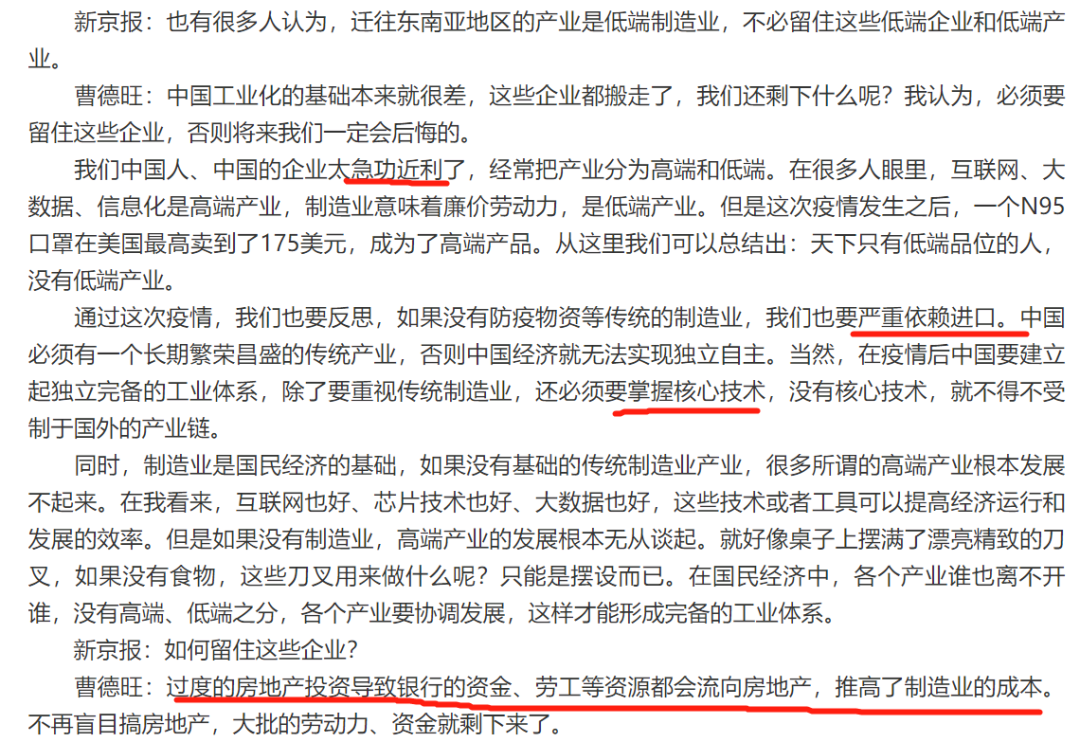 5)过度搞房地产,是推高制造业成本。(在帮助美、日等国召回他们的生产线提供财务支持)