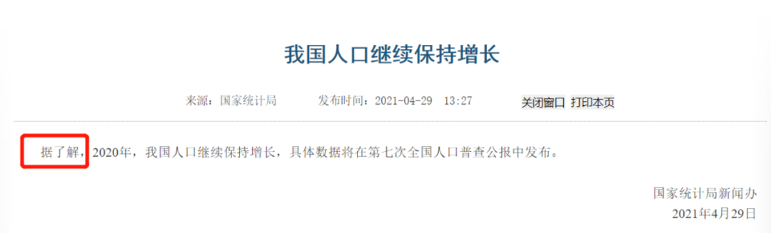 哦对了,这也是个好消息。因为境外媒体这两天热传第七次人口普查数据是负增长,统小姐忍不了了,昨天在官网Po了张图: