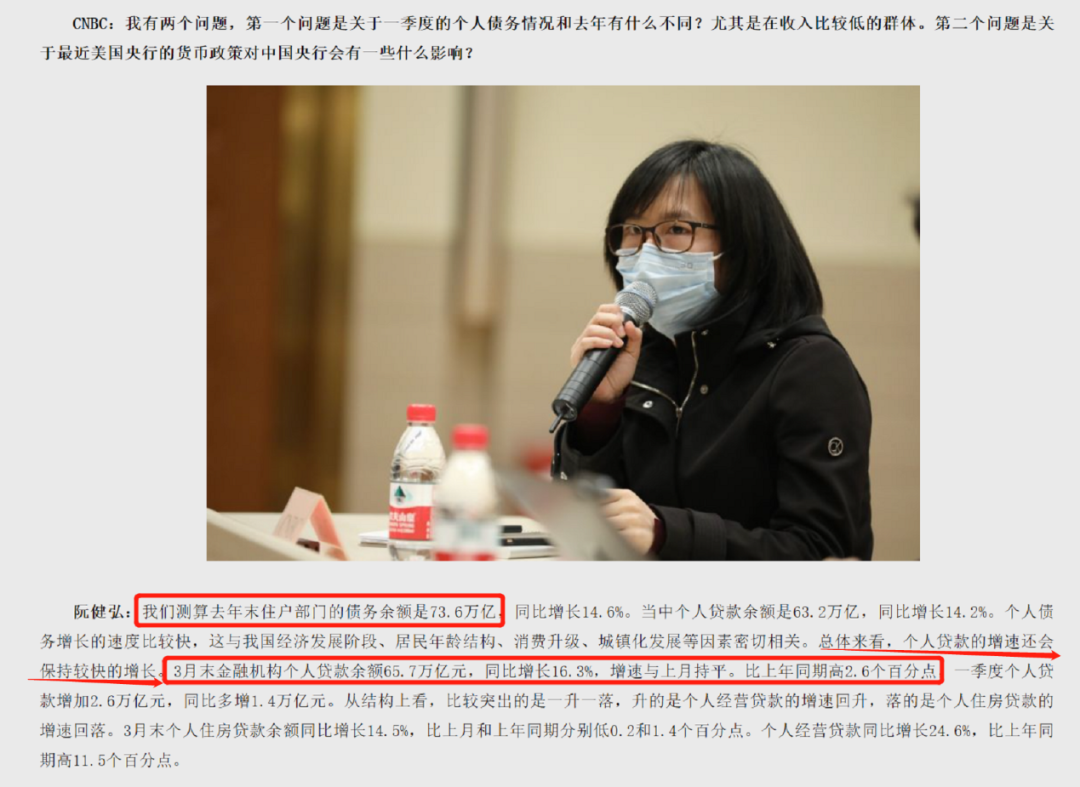 但重点来了,央妈在一季度的新闻发布会上告诉我们:“总体来看,个人贷款的增速还会保持较快的增长”: