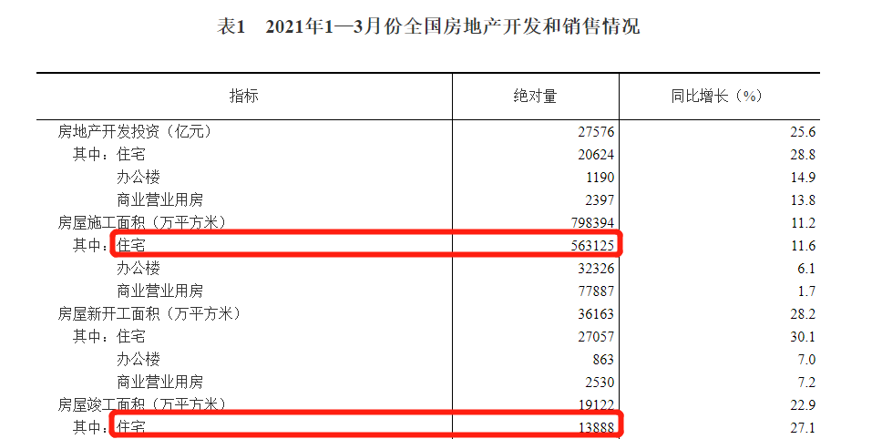 根据统小姐3月末的施工面积(住宅)减去竣工面积(住宅)得出54.9亿平的在建住宅面积。
