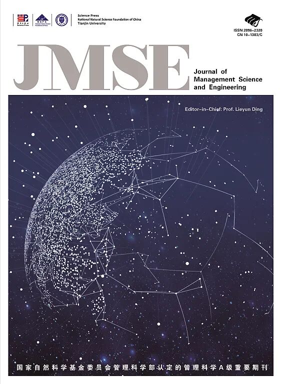 Journal of Management Science and Engineering(JMSE)《管理科学学报》(英文版)是一本由中国科学院主管,国家自然科学基金委员会 (NSFC) 管理科学部、天津大学管理与经济学部和科学出版社,共同主办的开放获取英文学术期刊。期刊现任主编由NSFC管理科学部丁烈云院士担任。