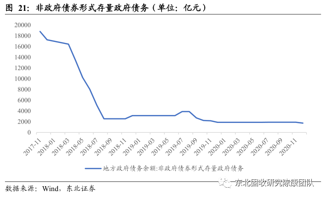 置换债方面,自2015年起,各地方政府开始置换债计划,共计14.34万亿地方债置换需要在3年左右的过渡期内完成。2018、2019和2020年末,地方政府需要置换的债券(非政府债券形式存量政府债务)的剩余量分别为3151亿元、1889亿元、1751亿元,2020年降幅有所收窄。考虑到2021年经济政策或将回归常态,2021年将继续置换剩余部分,预估地方政府置换债发行规模为1000亿元。