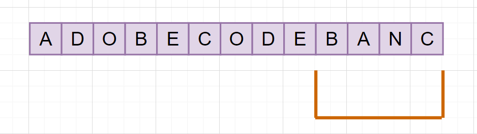 不断重复以上的步骤,把找到满足条件的窗口保存下来,比较得出最小的子串。示例满足条件的最小子串是BANC