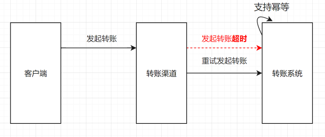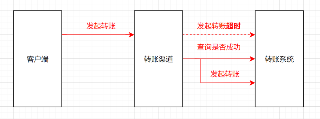 拿我们的转账例子来说,转账系统提供一个查询转账记录的接口,如果渠道系统调用转账系统超时时,渠道系统先去查询一下这笔记录,看下这笔转账记录成功还是失败,如果成功就走成功流程,失败再重试发起转账。