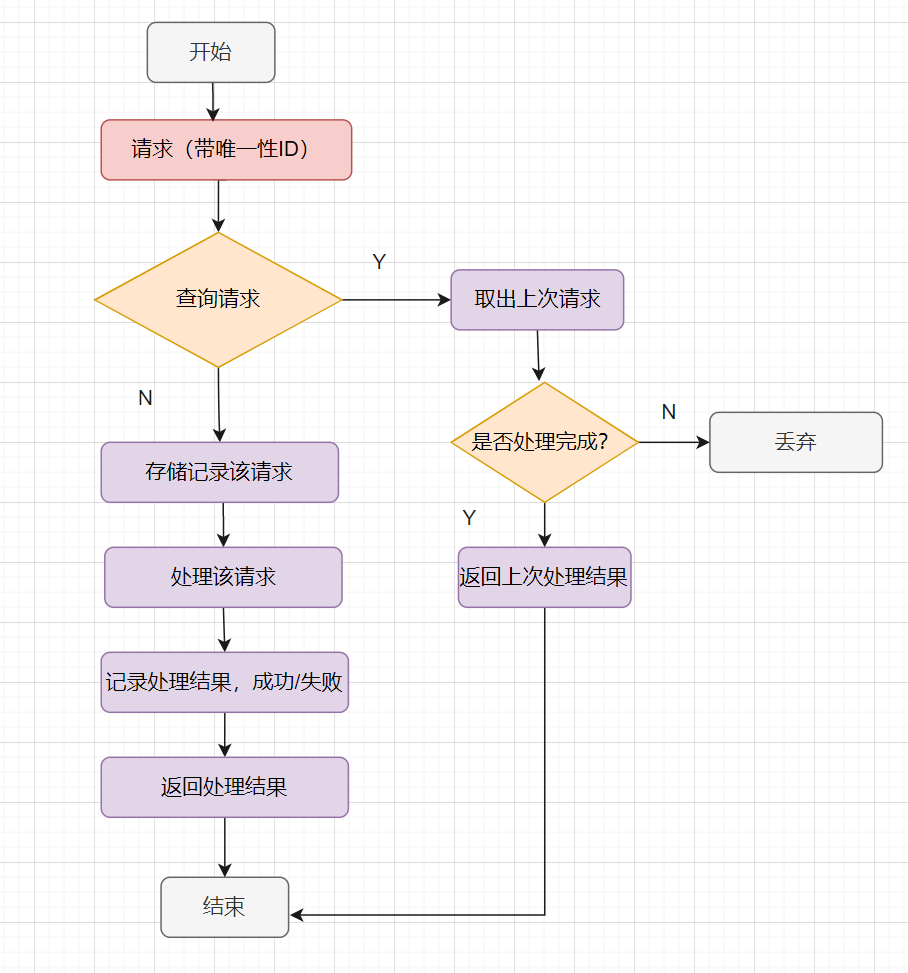 幂等处理的过程,说到底其实就是过滤一下已经收到的请求,当然,请求一定要有一个全局唯一的ID标记哈。然后,怎么判断请求是否之前收到过呢?把请求储存起来,收到请求时,先查下存储记录,记录存在就返回上次的结果,不存在就处理请求。