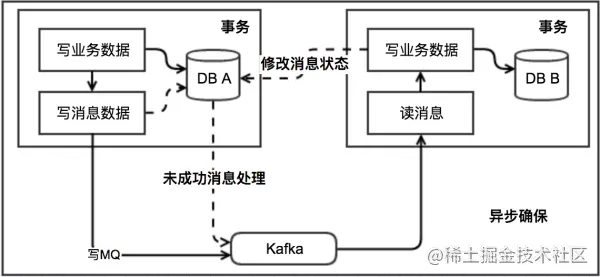 生产方和消费方定时扫描本地消息表,把还没处理完成的消息或者失败的消息再发送一遍。如果有靠谱的自动对账补账逻辑,这种方案还是非常实用的。