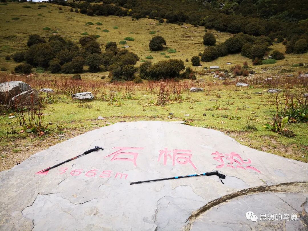 我决定继续走,顺着坑坑洼洼的山道又前进了1.5公里,终于到了石板热,这里传说是当地牧民走累了在石板上躺下休息的地方。已经走了很远了,再往前走个3-4公里就到打尖包户外歇息地了,从那里去到大峰营地、二峰营地,这是徒步者的天堂。我们在此折返。从上午10:30-下午3:30,历时5小时,来回约10公里。
