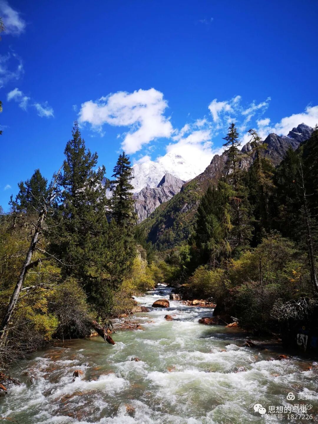 毕棚沟如九寨沟,山、水、色,9月份去,彩林才刚刚有点。雪山在远处耸立,近处湖碧绿。