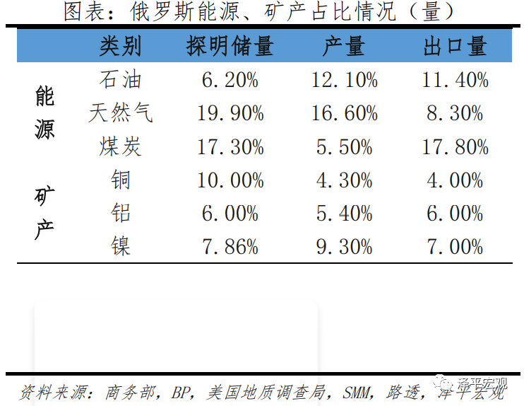 )金属矿产方面,主要涉及铜以及铝、镍等在新能源方向应用较大的品种。俄罗斯铜、铝、镍全球出口占比约4%、6%、7%,俄乌冲突加剧矿产供需不均衡。