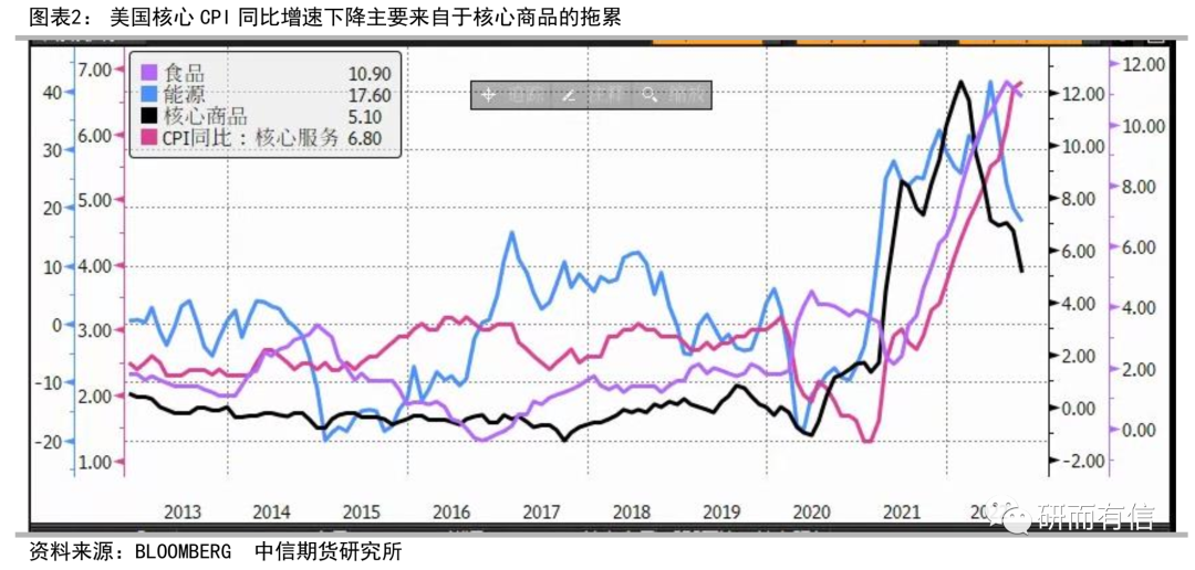 本公众号所推送的内容经由中信期货授权后发布,均为中信期货已公开的信息,不保证文中观点或陈述的完整性、准确性和更新及时性,且不作任何担保。本公众号所推送文章不构成任何形式的投资建议或销售要约,期货有风险,投资需谨慎。美联储不应在明年一季度之前过早放缓加息幅度,一则推动实际政策利率继续上行以确保进口价格和耐用品价格持续下行;二则避免非信贷金融条件过快放松、给核心服务通胀更多的上行压力。