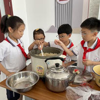 队员们顶着高温,分成三个小队走上街头,为烈日下的劳动者们送上了亲手制作的银耳汤和纸扇,并敬一个标准的少先队礼,向这些辛勤工作的一线劳动者们致以最崇高的敬意。