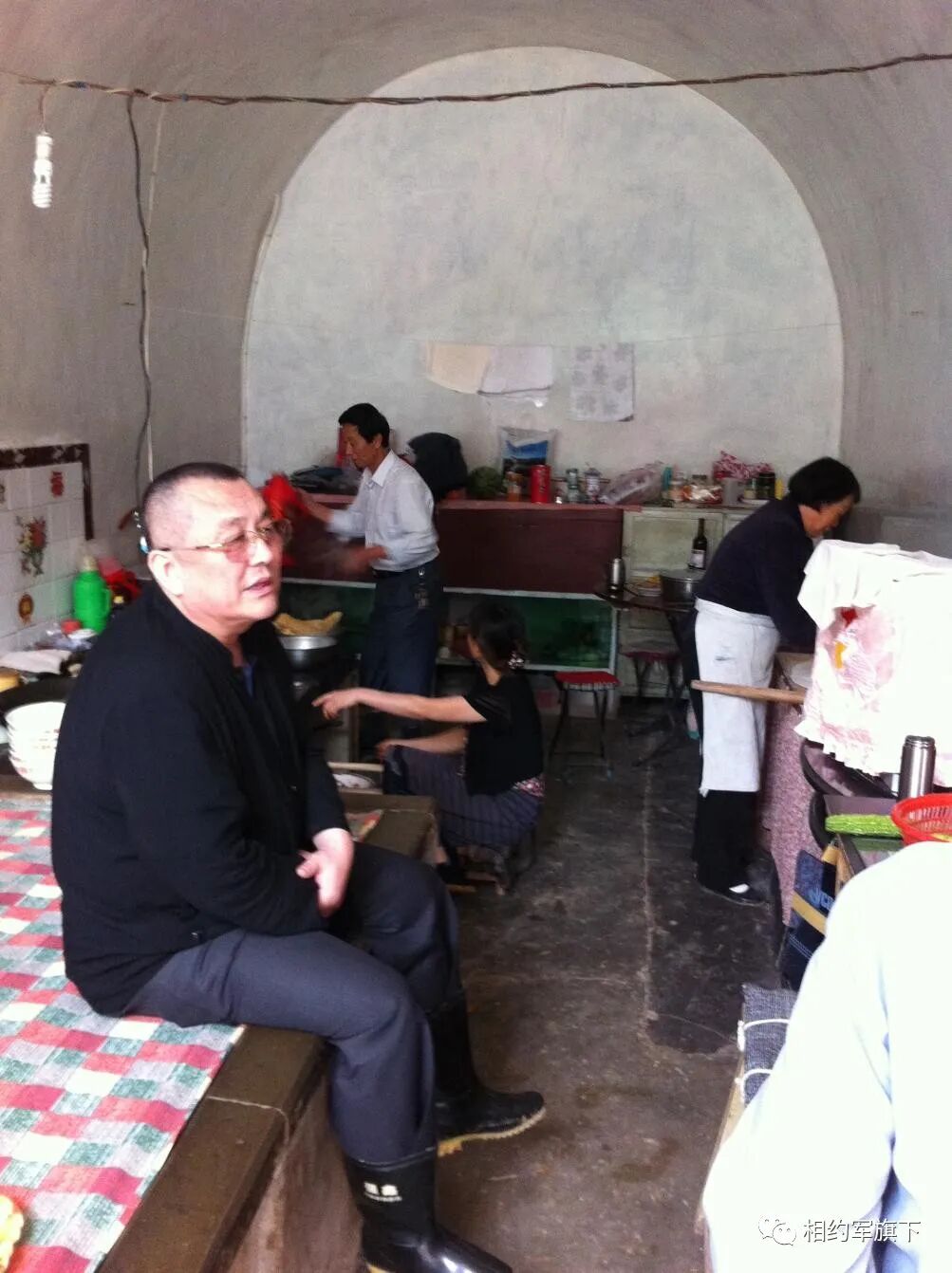村支部书记,我们三舅的儿子,在这里介绍了100多年老房的历史,他告诉我们,我们的妈妈就出生在挂白花门帘的这孔窑洞里。