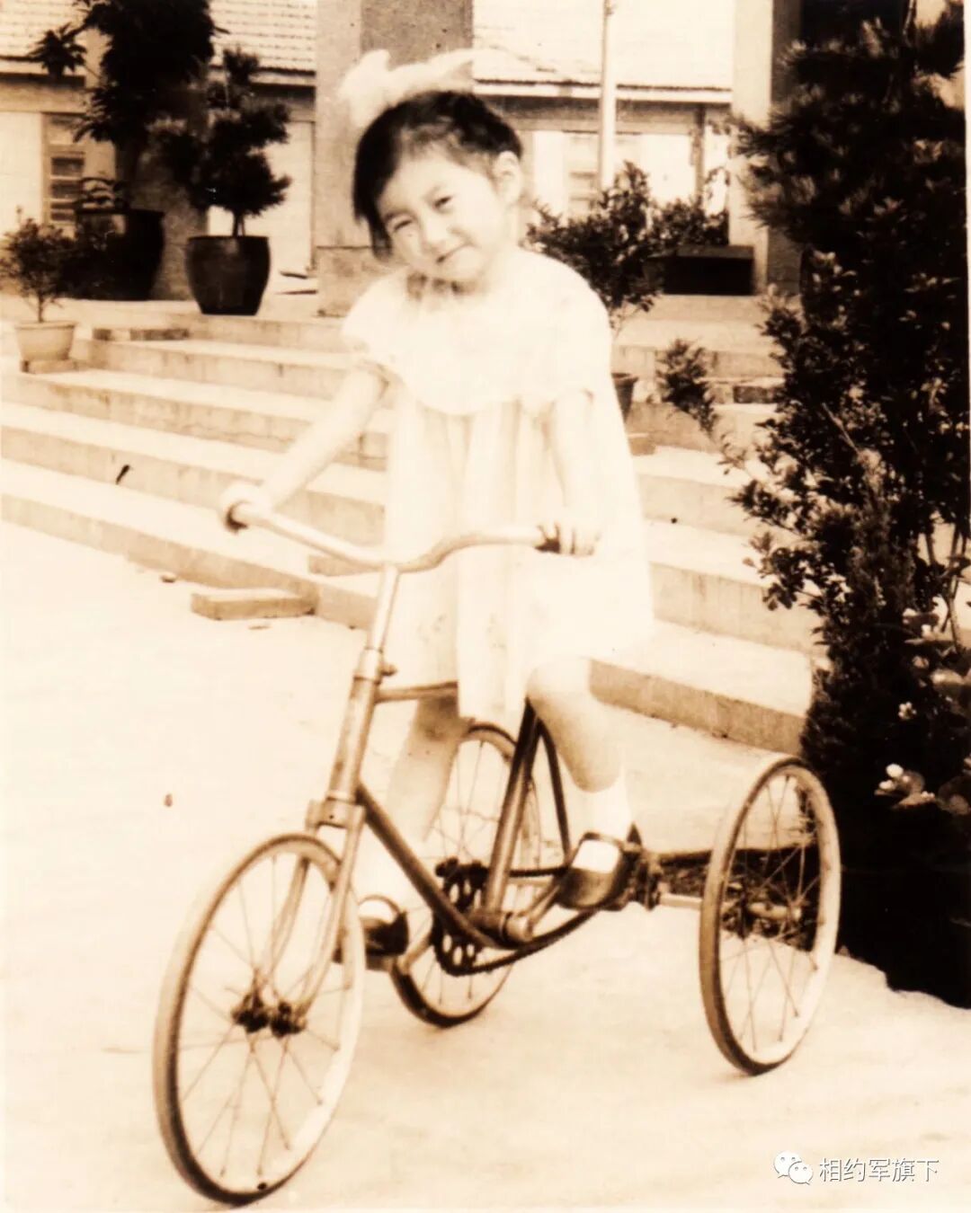 1983年6月,武汉,女儿穿着我儿时的乔其纱童裙、骑着我儿时的小自行车