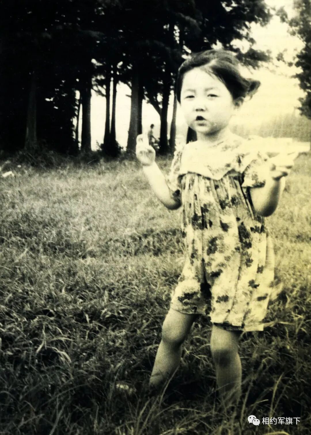 1974年夏,我穿着母亲唯一的一条玫瑰紫乔其纱裙,学着母亲的样,在大院留影