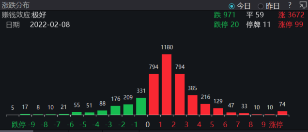 个股来看,3672只股票上涨,971只股票下跌,上涨比例接近8成,对比指数的跌幅说明当前杀跌的以权重龙头为主。