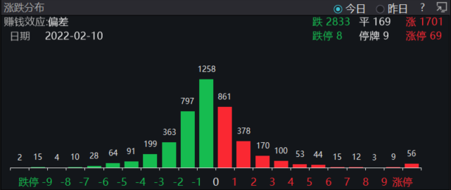 个股来看,1701只股票上涨,2833只股票下跌,上涨比例不到4成: