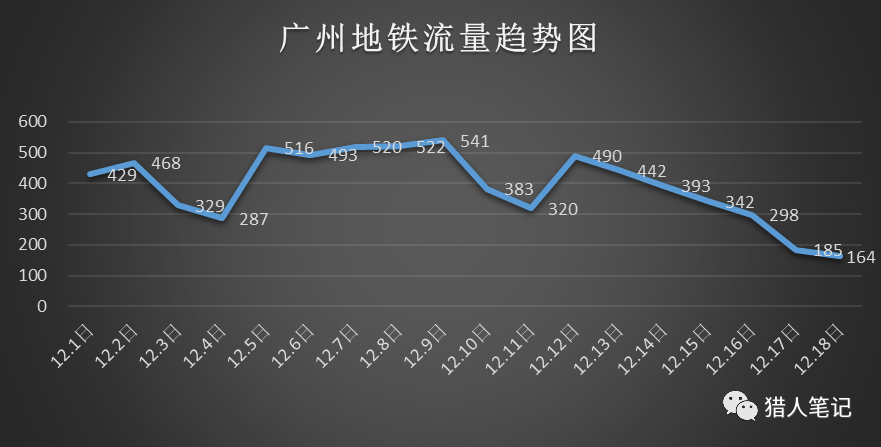 比如广州这个月的地铁流量趋势如下:
