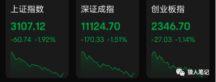今天大盘低开低走,一路下跌,所有宽基指数全部下跌: