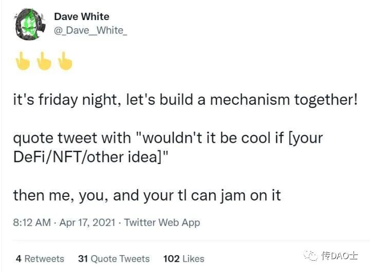 假如你对Web3有兴趣,或需要跟DAO这种组织方式相关的知识,请去“传DAO士”社群索取,一群研究DAO实践DAO的人等着你,点“传DAO士社群介绍”看细节。