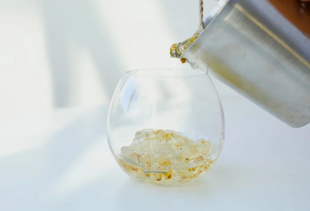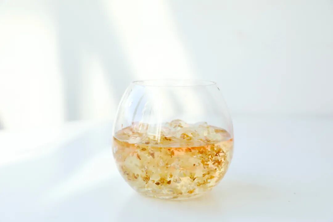 如果说「白桃酷冰乐」是梦幻的少女色,那这道「桂花啫喱撞白桃乌龙茶」则充满了诗意,再搭配一本书,静静地享受一个人的时光,光是想想就相当惬意!