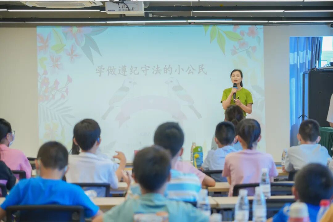 “一鹿说法•共‘童’关注”普法活动于7月31日在南汇党群中心启动,采取“1+1+14”的实施方案,组织了“一批”未成年人法治宣传教育骨干讲师,通过“一组”主题内容提供菜单式选课的方式,历时一个多月,在全区14个街镇全面铺开,最后联合五马街道社区学校向所辖广场路小学五年级学生宣讲“开学普法第一课”,共开展讲座15场,是鹿城区围绕法治护航儿童友好城市建设,衔接校园法治教育推出的普法专场活动。整个活动围绕宪法、民法典和预防校园欺凌、预防性侵等主题,以小故事、做游戏、幽默的小品等方式加深青少年法治安全意识和自我防范意识,为青少年健康成长打下良好的法治基础。