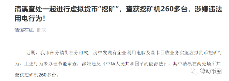 昨天,某地政府公众号发文称“查处一起进行虚拟货币“挖矿”行为,查获挖矿机260多台,涉嫌违法用电行为!”。带着比较好奇的眼光,点了进去。结果看到一个匪夷所思的结论,该文竟然宣称挖矿行为违反《中华人民共和国节约能源法》。可能是我孤陋寡闻,目光短浅吧。于是带着强烈的怀疑情绪,重新学习了一下《能源法》。结果,愣是没找到挖矿行为违法的依据,姑且抱着学习交流的心理,和各位读者一起探讨一下。