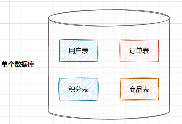 在业务发展初期,业务功能模块比较少,为了快速上线和迭代,往往采用单个数据库来保存数据。数据库架构如下: